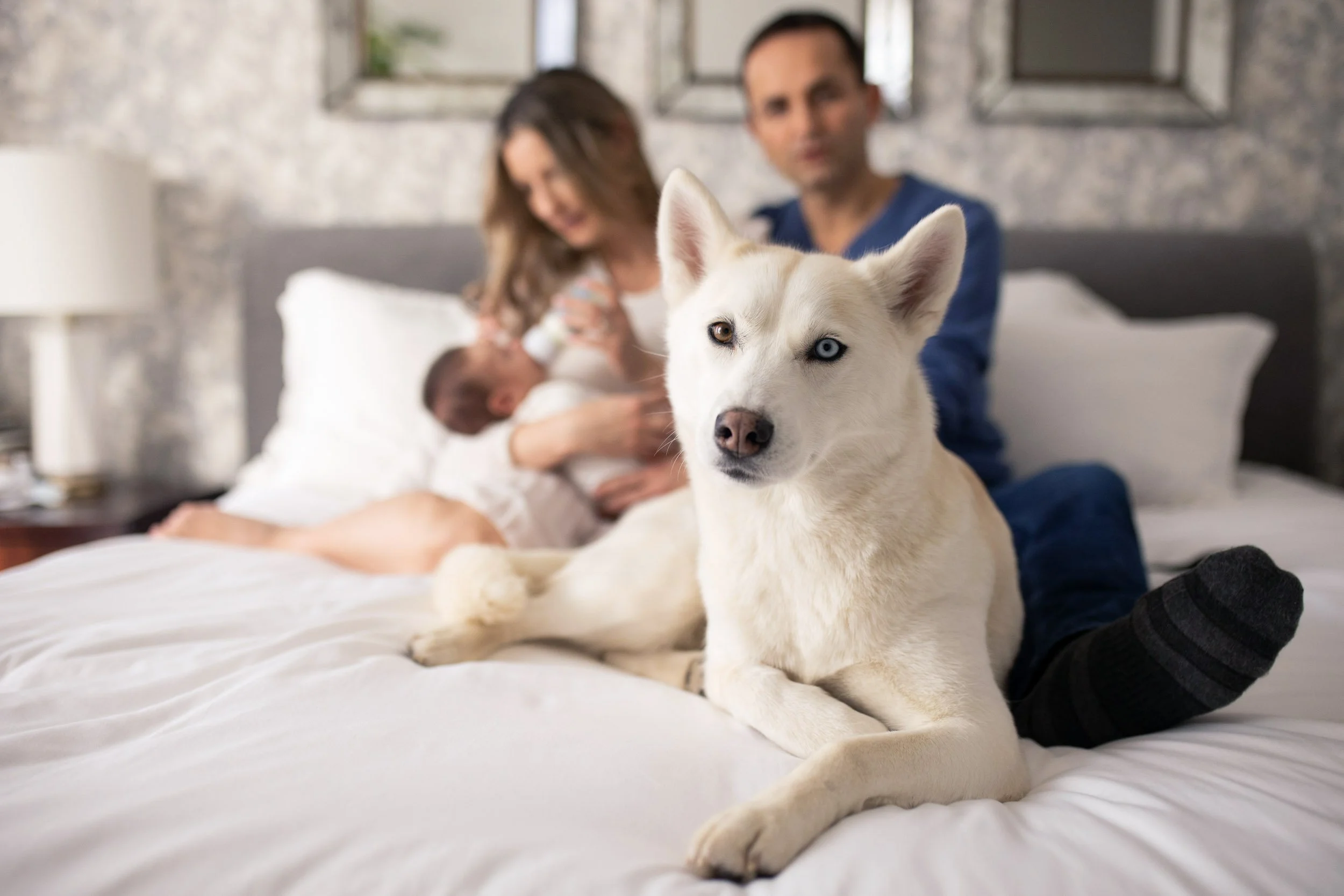 Boston family photos with newborn baby and dog at home in Boston South End (Copy)